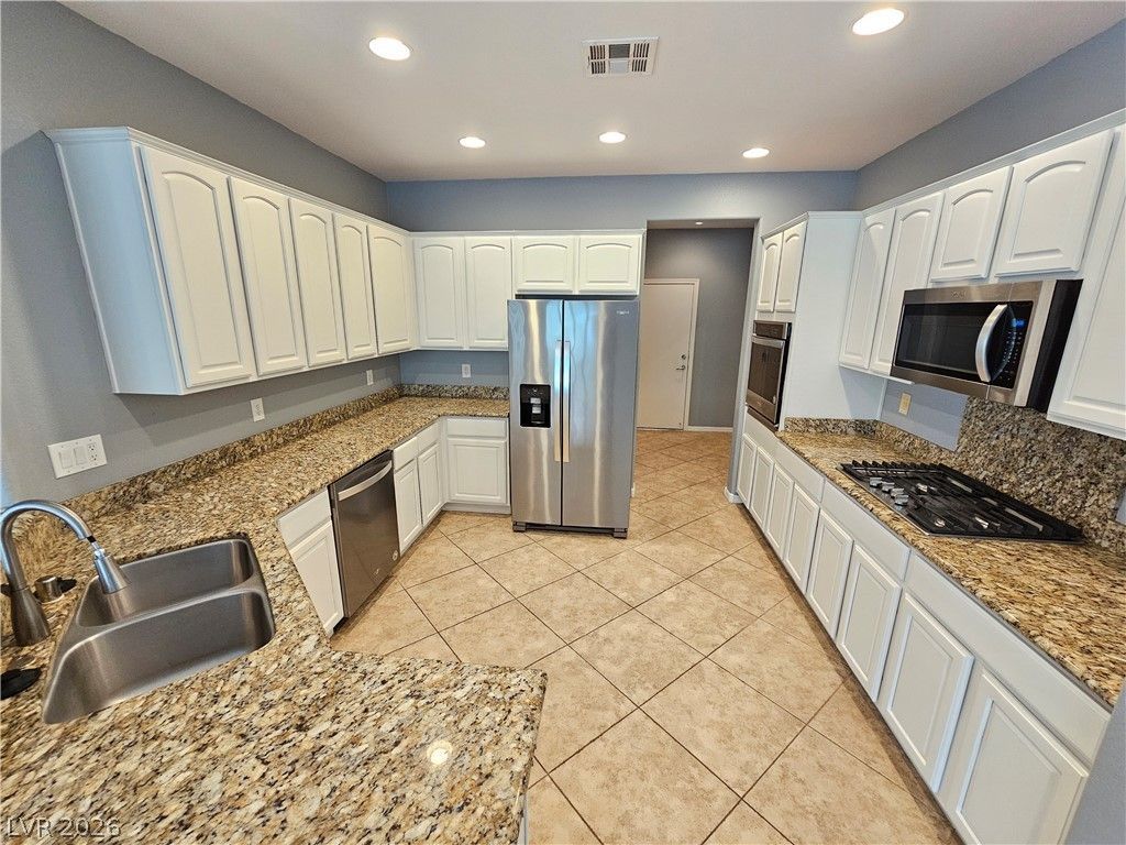 Gorgeous 55+ home in Sun City Anthem with three bedrooms! Fantastic community amenities such as golf course, tennis courts, fitness center and pool. This single story home has tile in living area and carpet in bedrooms. Kitchen features granite counters, stainless steel appliances and white cabinetry. Large laundry room with sink, storage, and counter space. Hall bathroom has grab bar in shower. Primary bedroom has ceiling fan/light and walk in closet. Primary bathroom has double sinks, separate tub and shower and toilet room. Desert landscaping in front and back. Tenant to verify all information including schools.