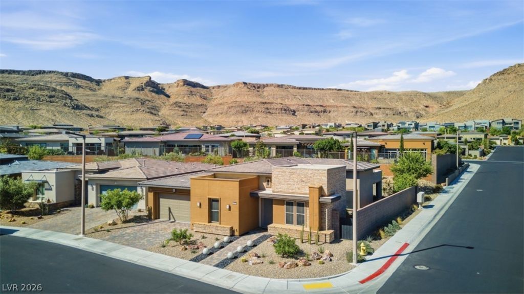 Rare find of exceptional features, value and location w/in the heart of guard gated Regency, 55+ Active Lifestyle in Summerlin South. NO SID!!! $25K corner lot premium near amenities. Air Scrubber System w/o filters to change! Upgraded kitchen cabinets. Top glass panels add design features. Extended breakfast table not offered in this model was specially ordered. Marble backsplash adds a touch of elegance to quartz and granite counters, bosch and viking appliances. Separate owner suite w/dramatic counters and raised shower seat. Guest BR features en-suite bath. Extensive closet and cupboard space. Side courtyard offers charm, sophistication and the sweet scent of jasmine. Front landscape designed to frame the home with specialty rocks, pebbles & landscape speres. Every plant specifically chosen for its beauty, low water use and for NV soil enhancing the Arroyo behind. Steel security windows. EV port in garage and so much more. See attached document list. NO SID PAYMENTS!